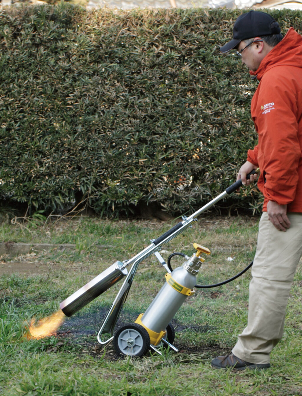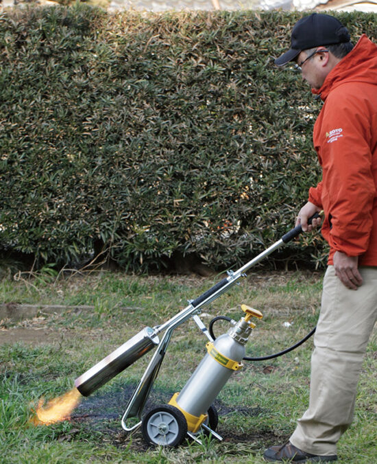 強火力、70.9kW(61,000kcal/h)で雑草を焼却。
