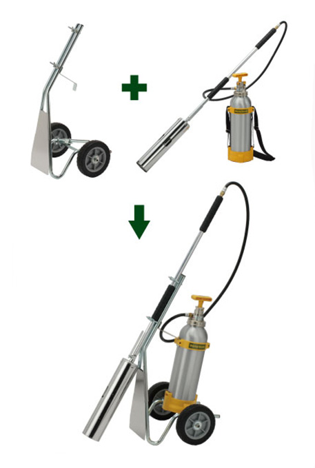 火口径80ミリの業務用モデル、アルミ製タンク使用の大型本格派バーナー KB-300と専用台車のセット。